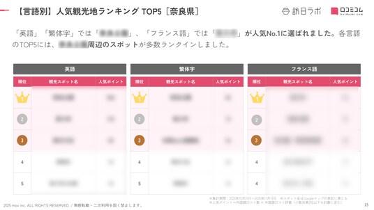 - 調査対象:訪日ラボが独自に選出した奈良県の観光スポット(計2,506 件)
