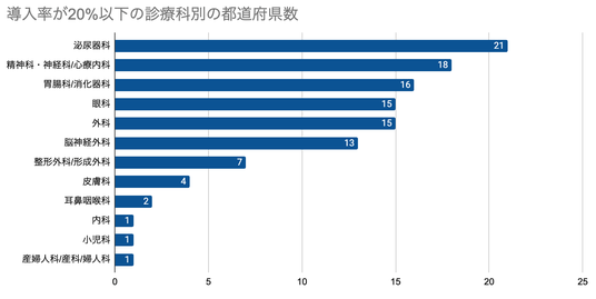 導入率が20%以下の診療科別の都道府県数