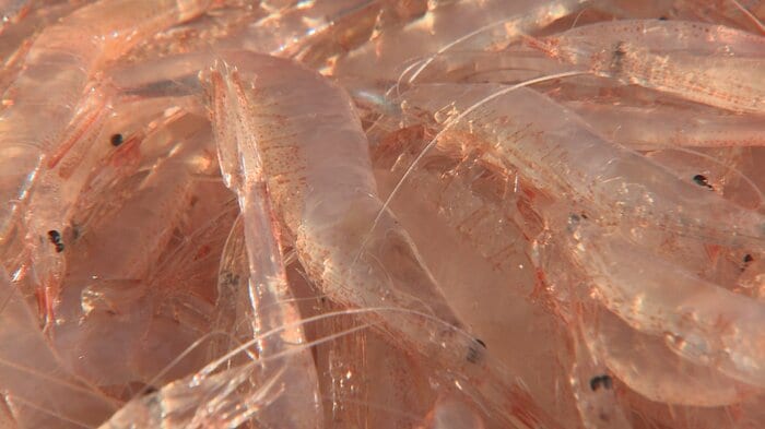 27日今朝9時半ごろ、新湊漁港には2隻のシロエビ漁船が戻り、あわせておよそ200キロが水揚げされました。