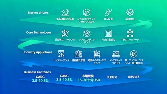 また、本白書は、バイオリーチング技術の全体像を、市場動向、技術動向、産業応用、ビジネス成果の四層フレームワークで整理し、読者が各層の相互作用を理解しながら戦略的判断を下せるよう設計されている。