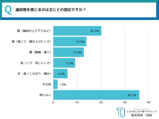 - “膝”の違和感が最も多く、全体の2割(20.2%)を占める