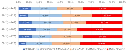 ■「友人知人との忘年会」に「参加したい・計」は74.6%、全年代で約7~8割という結果に