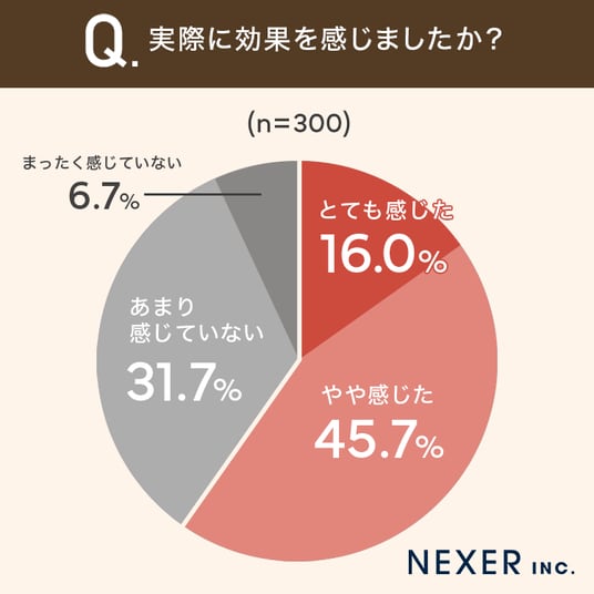 次に、実際に効果を感じられたかを聞いてみました。