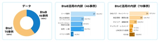 - BtoC 6割、BtoB 4割で両者とも活発に活用