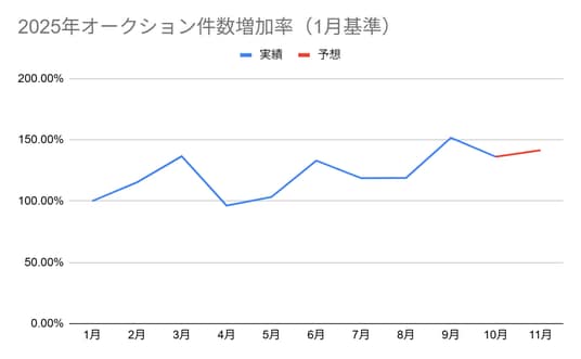2025年オークション件数増加率(1月基準)