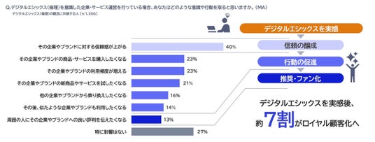 こうした背景から、単なる品質競争を超え、企業の姿勢や倫理観が厳しく問われる時代へと移行していることが示唆されています。利便性・品質を追求する企業と、信頼性を評価する消費者の溝を埋めるために、企業側があらかじめ「デジタルエシックス(倫理)※」を重視しておく必要があります。