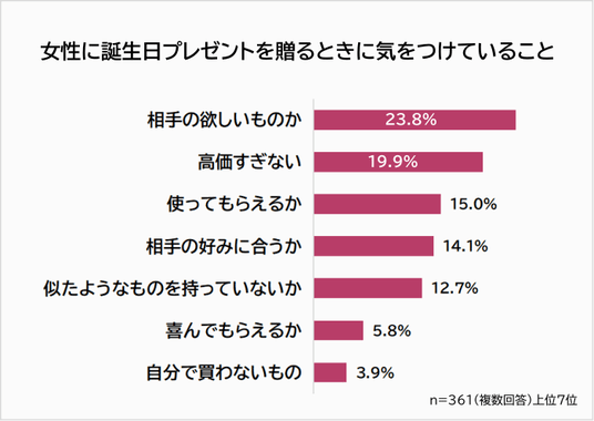 ・女性に誕生日プレゼントを贈るときに気をつけていることは「相手の欲しいものか」