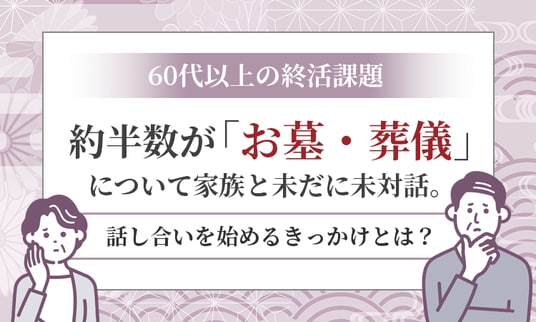 60代以上の方に調査したところ、約半数が「お墓・葬儀」について家族と未だに話していない、と回答しています。