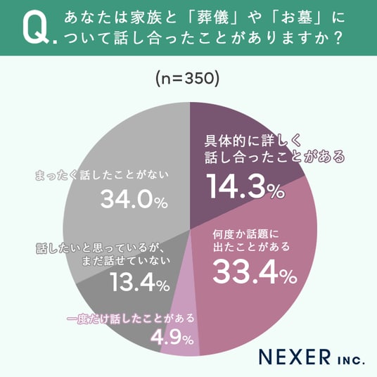 「葬儀」や「お墓」について家族と話し合ったことがある方は約半数にとどまり、具体的に話し合えた方はわずか14.3%でした。