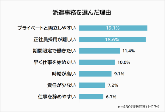 ・派遣事務を選んだ理由は「プライベートと両立しやすい」