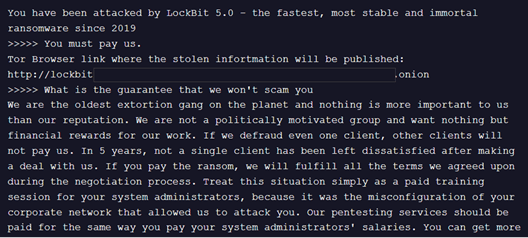 9月中旬の攻撃に使用されたLockBit 5.0 の脅迫文