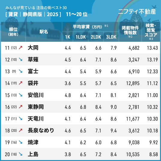 注目の街ランキングベスト30 静岡県版 2025 11~20位