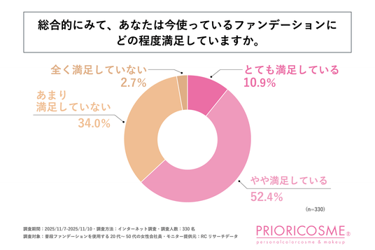 ・20代~50代の女性会社員の35%以上が、今使っているファンデーションを総合的にみて満足していない