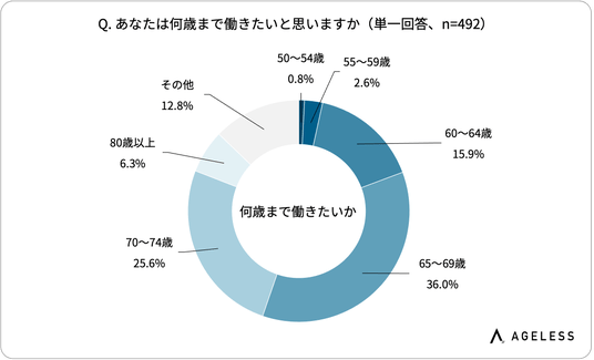 - 「何歳まで働きたいか」TOPは「65-69歳」で3割超、次いで「70-74歳」が2割超