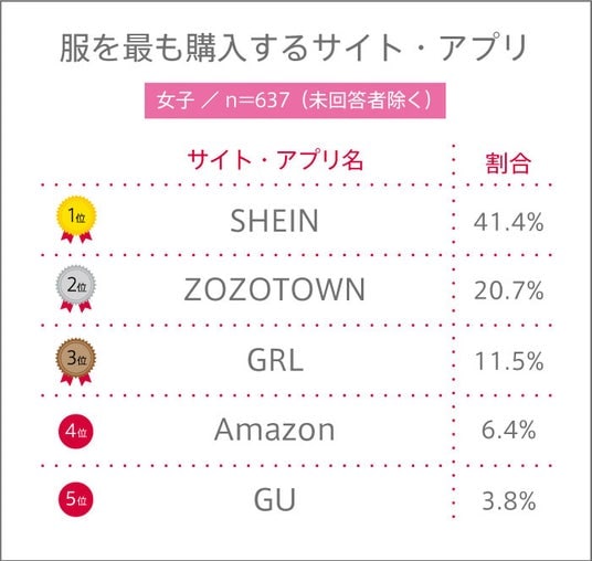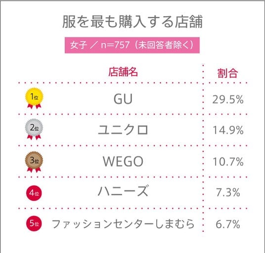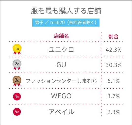 店舗の1位は男子は“ユニクロ”、女子は“GU”! サイト・アプリで1位となったのは?