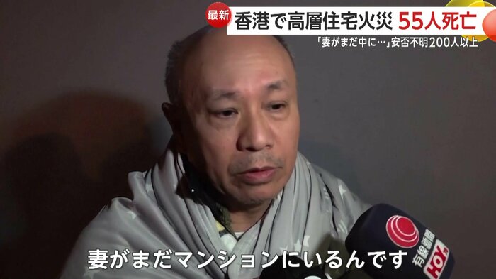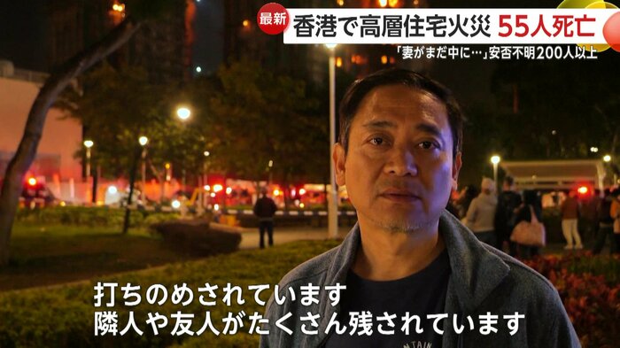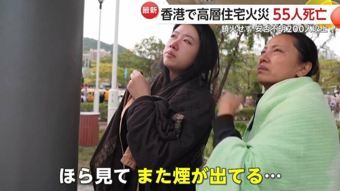 涙する住民「何もない」“過去最悪”香港の高層住宅火災