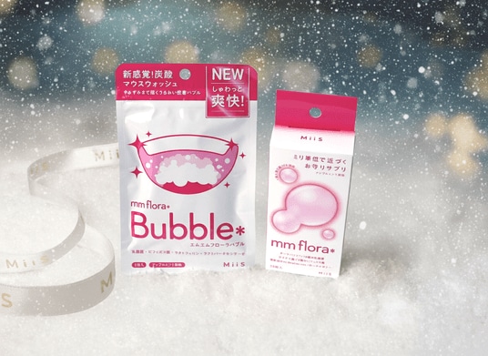 また、「mm flora*Bubble(エムエムフローラ バブル)」は、水がなくても手軽にオーラルケアができる商品なので、飲み会後や外出先など、“今すぐスッキリしたい”場面で活躍します。炭酸の発泡により唾液を出やすくするので、冬に起こりがちなドライマウス対策にもぴったりです。