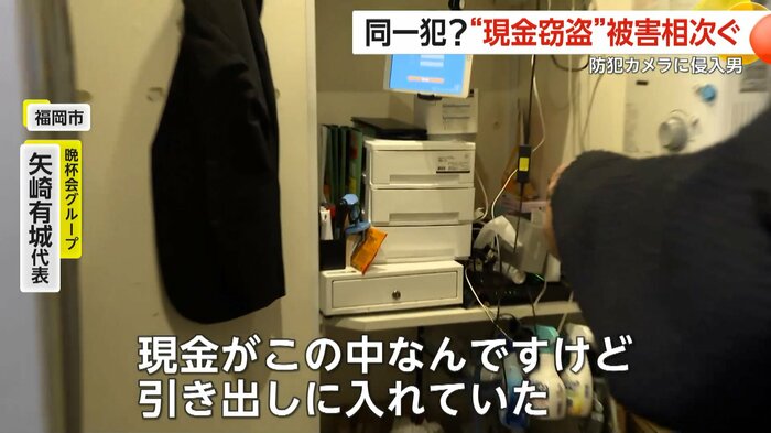 晩杯会グループ・矢崎有城代表は、「(同じ人物)ですね。バッグが完全に一緒なので。まったく見覚えもない。怖い。どうやって合鍵を作ったのか。従業員が頑張って稼いだお金を取られたのがすごく腹立たしい」と怒りをあらわにしている。