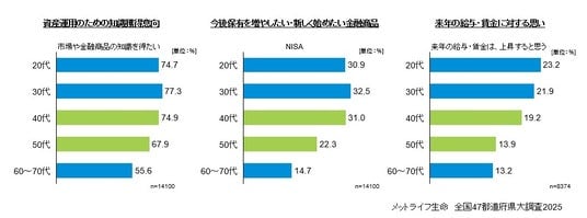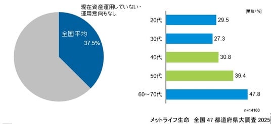 メットライフ生命保険株式会社が全国の20代~70代までの男女約1万4,100人を対象に、資産運用や将来への備え等について調査した「全国47都道府県大調査2025」、年代別の資産運用に焦点を当て、深掘りしてみました。
