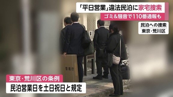 警視庁が家宅捜索に入ったのは、東京・荒川区にある民泊施設と民泊の運営会社。