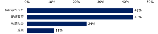 ・子どもが小さく、家族1人で育てるのは負担が大きいので配慮をしてほしいと伝えられた。(メーカー/300~999名)