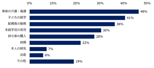「配慮要望」「拒否」「退職」があったと回答した企業に、社員から伝えられた理由を伺いました。上位は「家族の介護・看護」(46%)、「子どもの就学」(41%)、「配偶者の勤務」(41%)で、多くの方にとって家庭の状況が壁になっていることが分かりました。具体的なエピソードも紹介します。