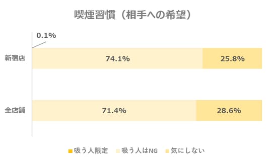 ・お相手に求める喫煙の習慣「吸う人はNG」割合、全店舗よりやや高め