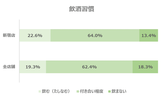 全店舗と比較すると、飲酒の習慣のある方がやや多い結果となりました。