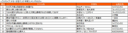 ※2…総合電子書籍ストア「ブックライブ」2025年上半期ランキングを発表