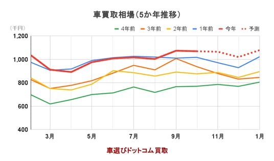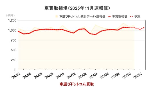 現時点では、円安の継続に加え、中古車販売店の年末商戦に向けた買取強化が重なり、高値水準が維持されている状況です。買い替えを前提として車を手放す場合は、年式が変わる前のタイミングでの売却を検討することが有効といえます。