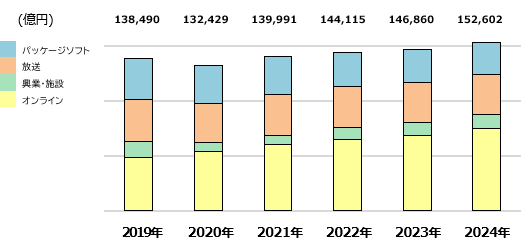 分野別には、映像・音楽配信、スマホゲームとオンライン広告が拡大、この合計が全体の過半に迫った。