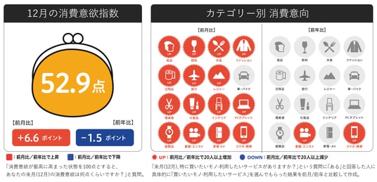 【Point1】12月らしく消費意欲は前月から急上昇するも、物価高と節約意識が水を差す