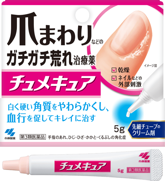 爪まわりなどの白く硬い角質をやわらかくし、血行を促してキレイに治す医薬品である「チュメキュア」は、現在の姿に完成するまで、約7年を要した思い入れの深い製品です。開発の大きなきっかけとなったのは、アイデア会議での「爪まわりが硬くガチガチになる」という何気ない会話でした。指先の荒れは細かい部位であるものの悩む方は多く、SNSなどでも「ハンドクリームで治らない」「切ってもまた硬くなる」といった、多くのお困りの声が寄せられていました。そこで私たちは、単に保湿するだけでなく、爪まわりの固くなった角質をやわらかくし、キレイに治すことに特化した治療薬が必要だと考え、「爪まわりのための治療薬」という新しい選択肢として本製品を開発しました。