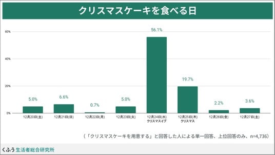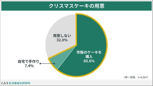 約7割が「クリスマスケーキを用意する」、約6割が「クリスマスイブに食べる」と回答