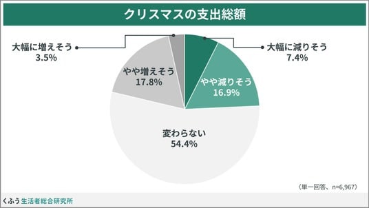 クリスマスの支出総額は半数以上が「昨年と変わらない」と回答。「変わらず使う」派と「変わらないように抑える」派に分かれる