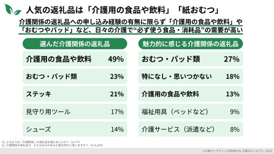 - 人気の返礼品は「介護用の食品や飲料」「紙おむつ」