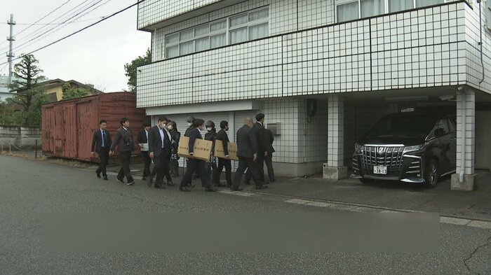 「午後1時です。段ボールを持った警察の捜査員が、富山市内の暴力団の組事務所へと入っていきます」