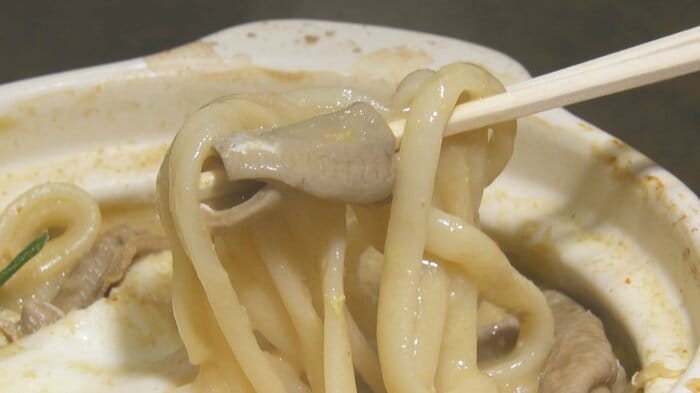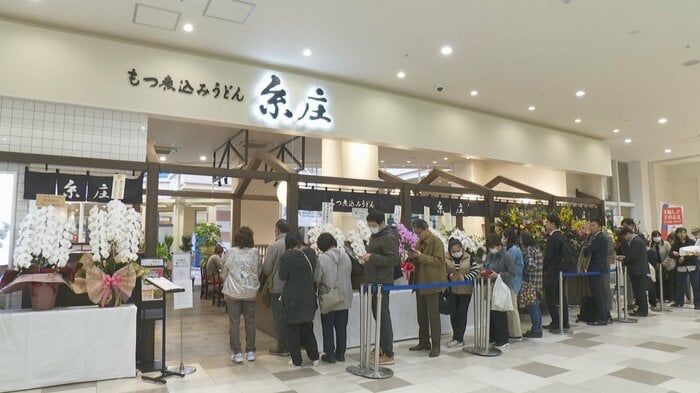 「糸庄」といえば、もつ煮込みうどんで知られる富山の人気店。28日のお昼頃には行列ができるほどの盛況ぶりだった。