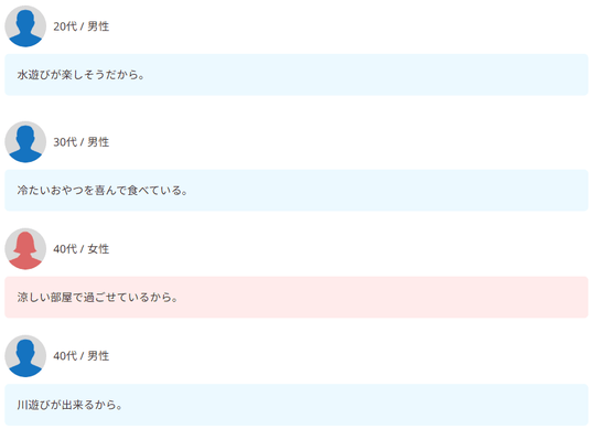 まとめると、夏支持の理由は「水辺のワクワク」と「室内の涼しさ」という軸で二手に分かれる傾向にあるということです。