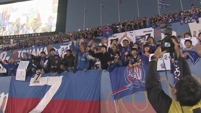 会場の富山県総合運動公園陸上競技場には9000人を超えるサポーターが詰めかけました。