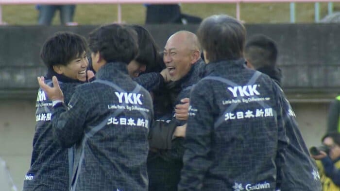 さらに後半15分。右サイドから滑川市出身・松岡のクロスに布施谷が頭で合わせ、追加点。