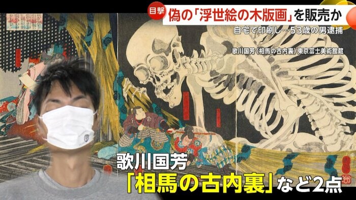 野々山容疑者が偽造したのは、浮世絵師・歌川国芳の代表作「相馬の古内裏」など2点だ。