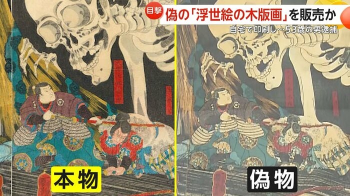 東京・神田警察署で28日、偽の浮世絵の木版画を本物だと偽ってネットオークションで売り、約120万円をだまし取った疑いで男が逮捕された。男は歌川国芳の代表作など2点を、自宅のプリンターで印刷するなどして偽造したとみられている。サイトでは「真作」と嘘の表記をして出品していた。