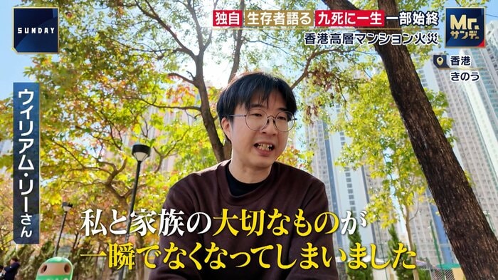 いまだ、被害の全容すら見えない、高層マンション7棟を炎に包んだ、香港史上最悪の建物火災。まさに、その中に取り残されていた住人がいた。