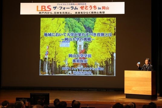 「LBSザ・フォーラムせとうちin 岡山~瀬戸内から、日本を元気に。未来をひらく情熱と発想」(主催:日本経済新聞社、テレビせとうち、共催:岡山大学 他)が、2025年11月28日に、山陽新聞社さん太ホールでハイブリッド形式にて開催され、那須保友学長が登壇しました。