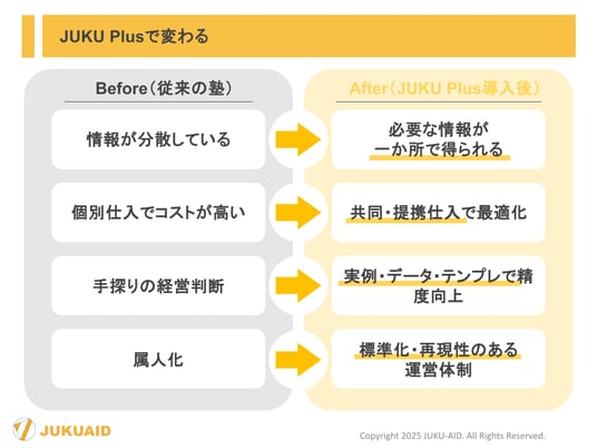 【塾エイド】塾経営の一番近くにあるコミュニティ-有料会員サービス「JUKU Plus!」正式リリースのお知らせ-