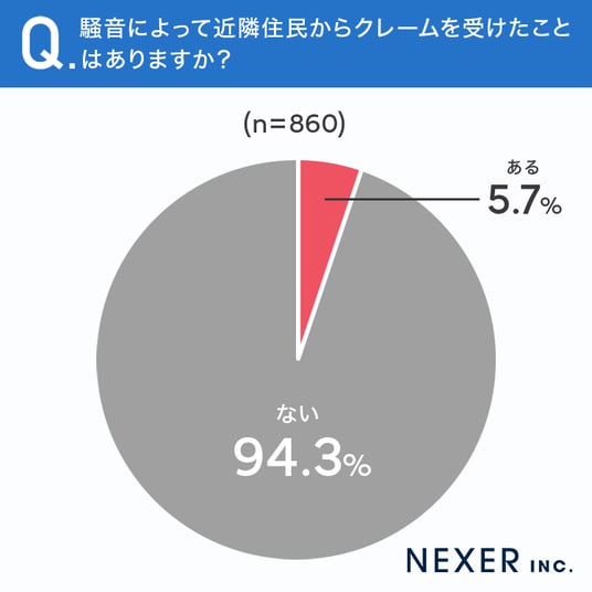 ■5.7%が、騒音によって近隣住民からクレームを受けたことは「ある」