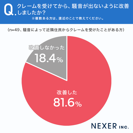 ■81.6%が、クレームを受けてから、騒音が出ないように「改善した」