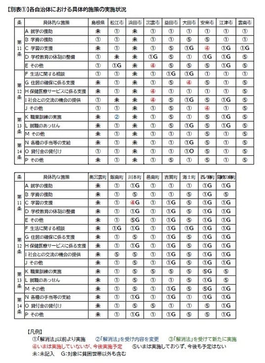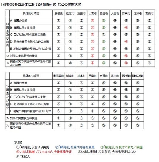 1.目的:「こどもの貧困」対策(特にひとり親家庭支援)の実態把握2.対象:島根県および県内市町村(全20自治体)