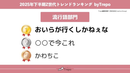 株式会社Creative Group(本社:東京都千代田区、代表取締役:中原一真)が運営する10代~20代女性向けトレンドメディア『Trepo(トレポ)』は、10代~20代の女性(Trepo girls)を対象に、2025年下半期のZ世代トレンド調査を行いました。WEBで実施したアンケート調査の結果をお知らせします。